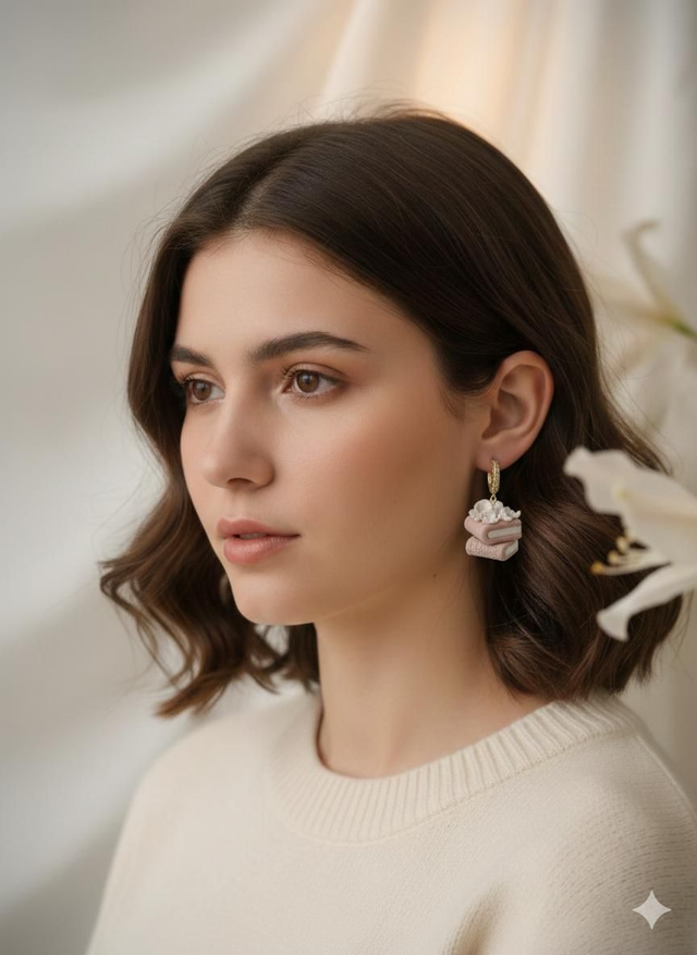 Dusty Pink - Spring Edition viseči uhanu knjigi s orhidejami