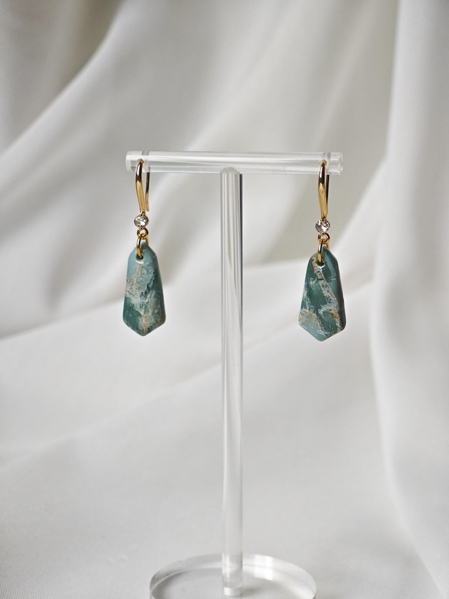 Mistic Green - Viseči karo uhani na pozlačeni nerjaveči osnovi