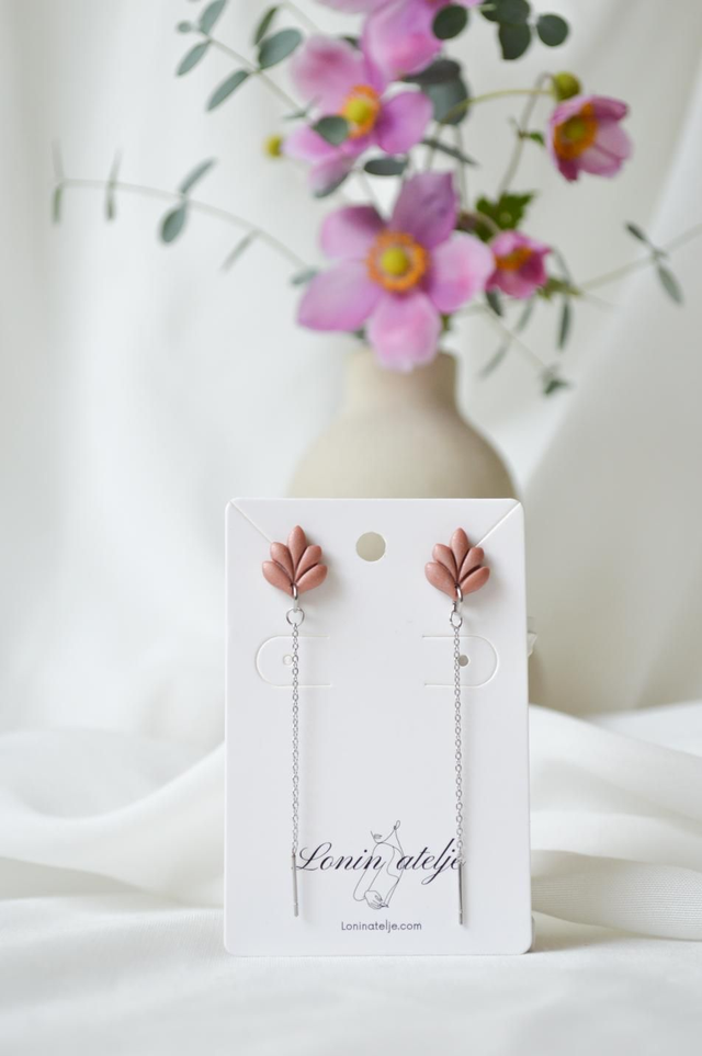 Nude Elegance Kolekcija - Nude roza viseči listi s srebrno vrvico