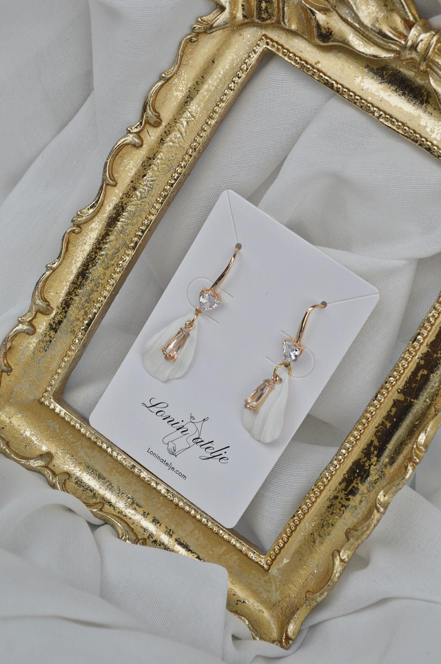 Poročna kolekcija 2026 - Viseči uhani na srčni osnovi list