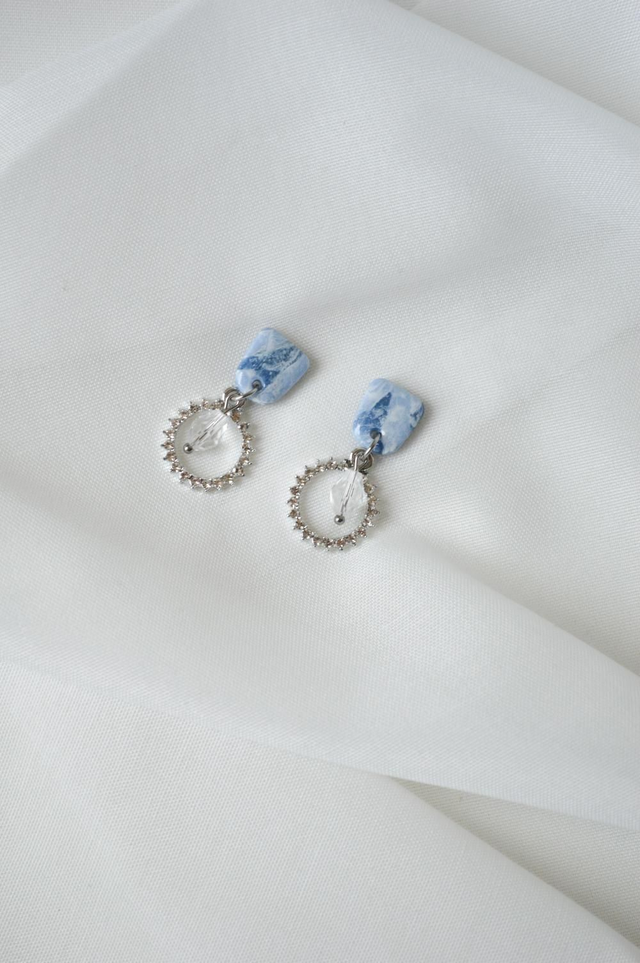 Blue Lagoon Kolekcija - Viseči modri uhani s obročem iz cirkonije in perlico