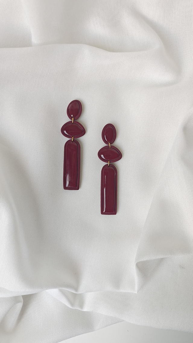 Elegant Flow - Bordo rdeči veliki viseči uhani