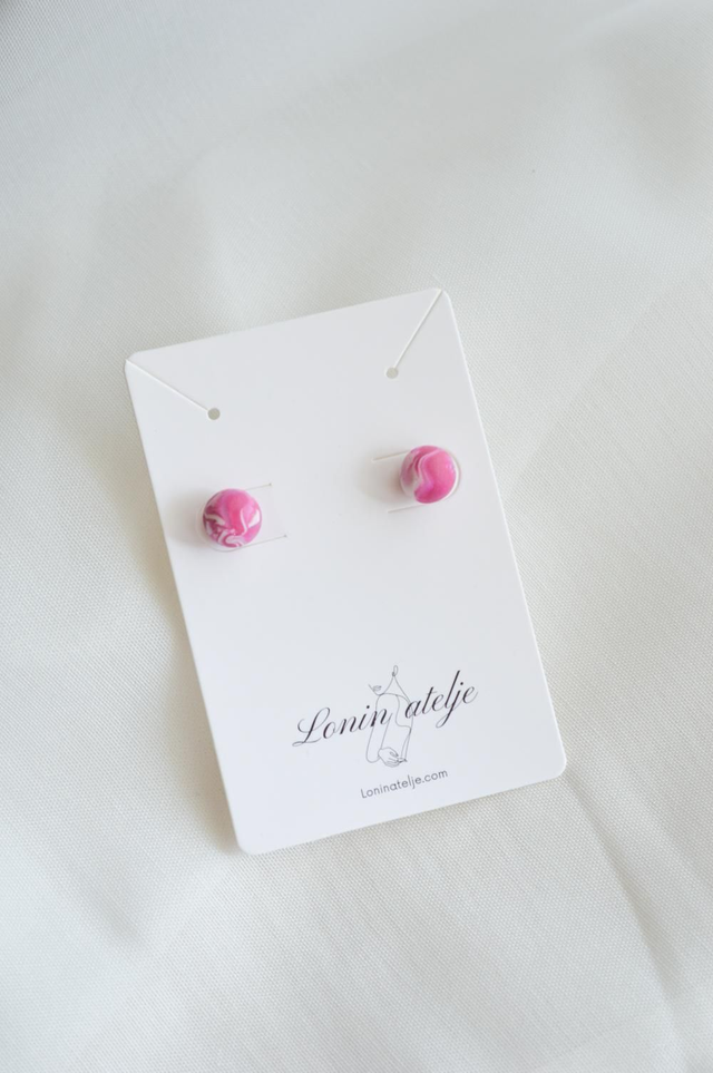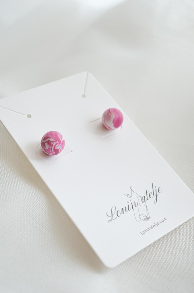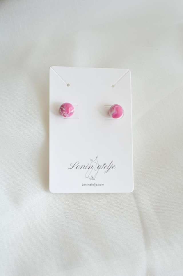 Flamenco Glow Kolekcija - Mali uhani marmorno roza bele kroglice