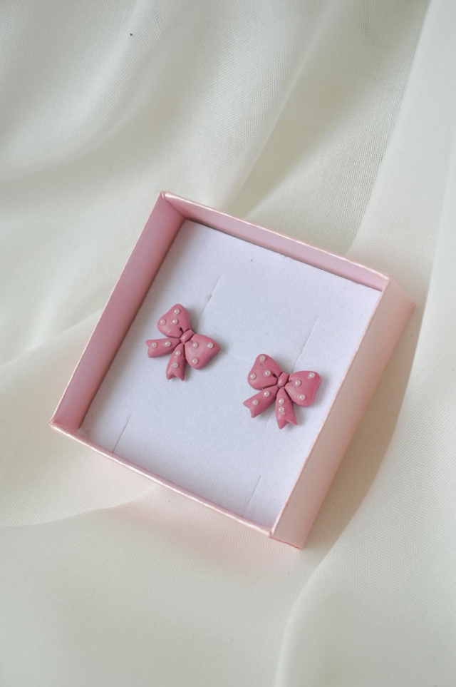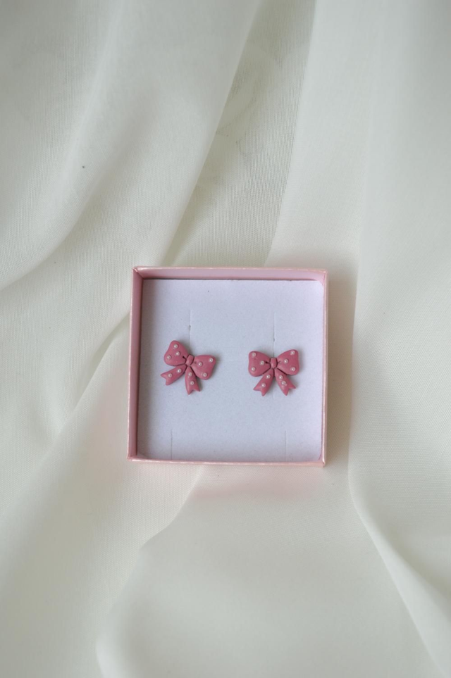 Nežni, a igrivi – ti mali uhani v obliki pentlje prinašajo popolno ravnovesje med romantično prisrčnostjo in elegantno preprostostjo. Ročno oblikovani iz polimerne gline v globokem temno roza odtenku, okrašeni z drobnimi belimi perlami, ki ustvarjajo videz nežnih pikic, dodajajo kanček čarobnosti vsakemu stilu.
