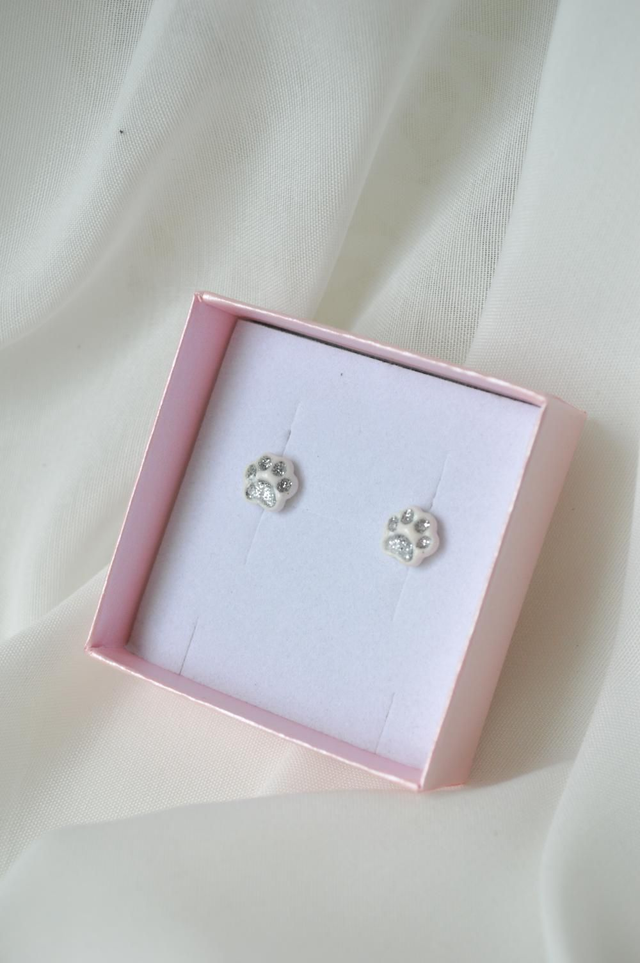 Majhni, ljubki in polni pomena – uhani v obliki tačke so ustvarjeni za vse ljubitelje živali, ki v sebi nosijo posebno toplino. Izdelani so iz polimerne gline in obogateni z drobnimi bleščicami v zlati ali srebrni barvi, ki zasijejo na blazinicah tačke in dodajo pridih igrive elegance.
