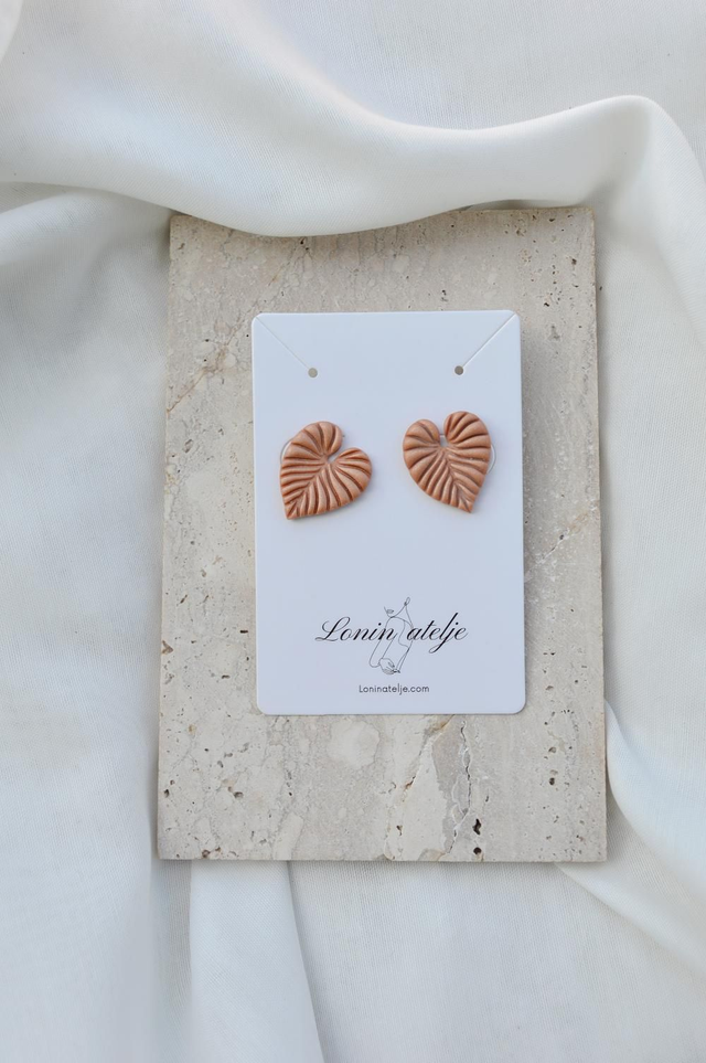 Rosewood Dreams – ročno izdelan velik uhan v obliki lista, bronasta barva
