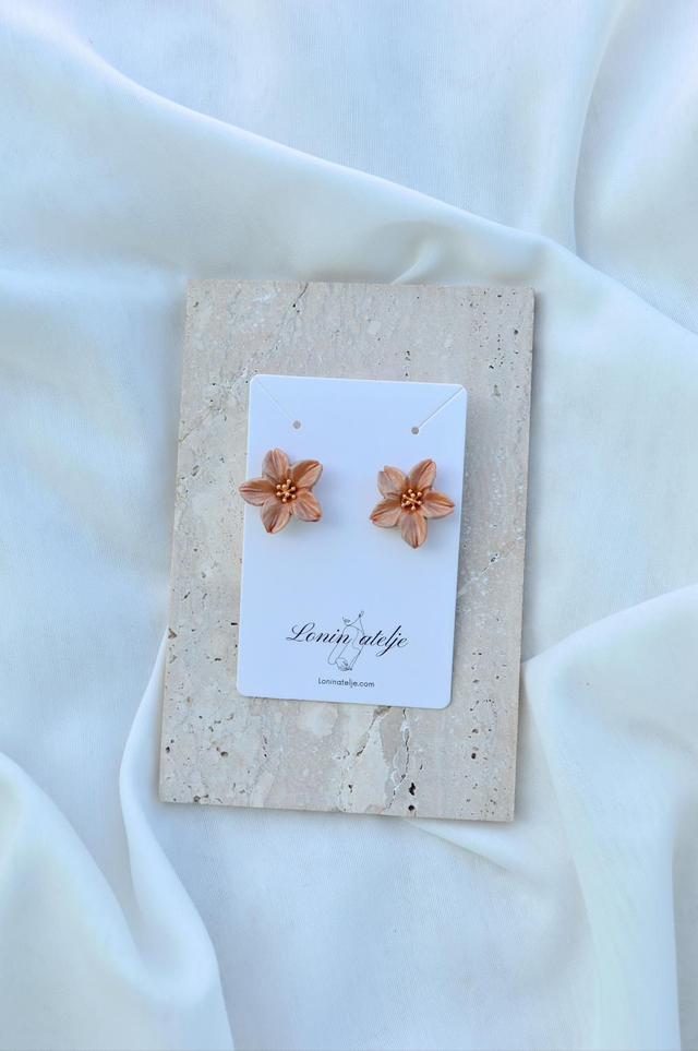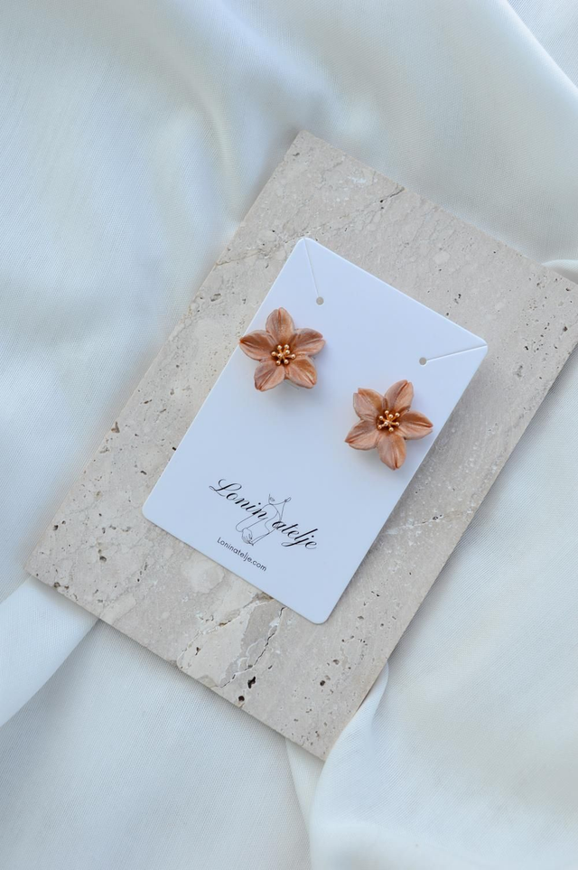 Rosewood Dreams – ročno izdelani uhani v obliki rožic s pozlačeno osnovo