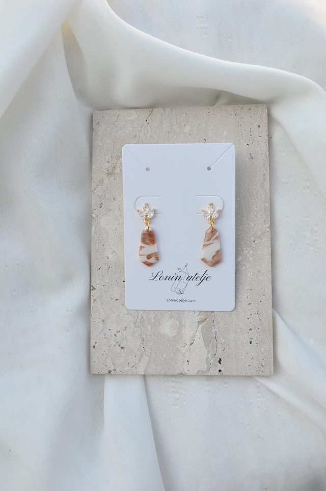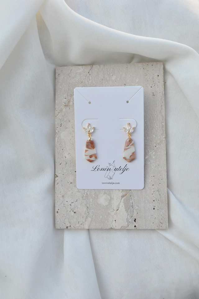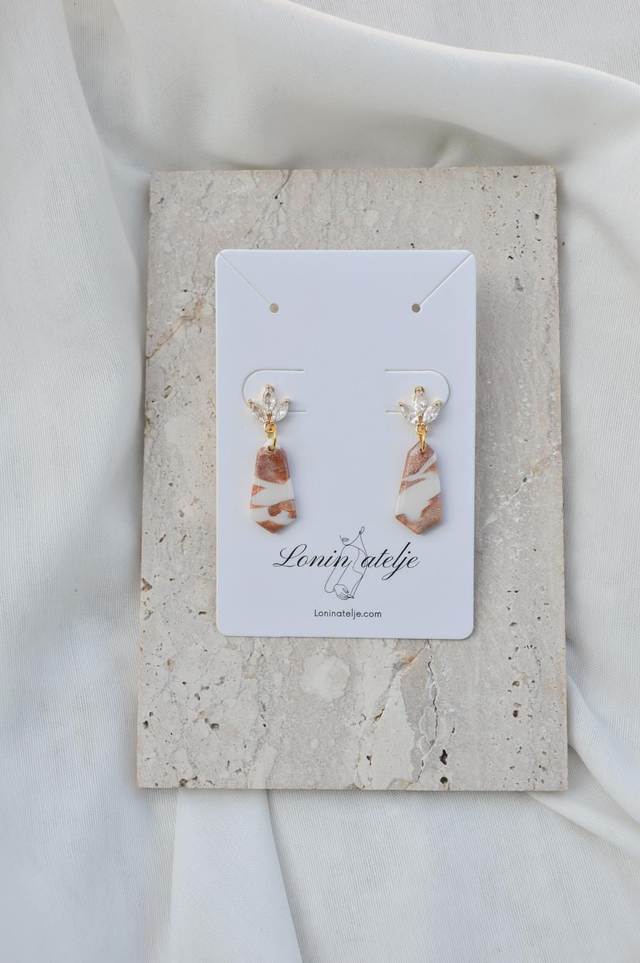 Rosewood Dreams – ročno izdelani viseči uhani z marmor efektom in cirkonijem