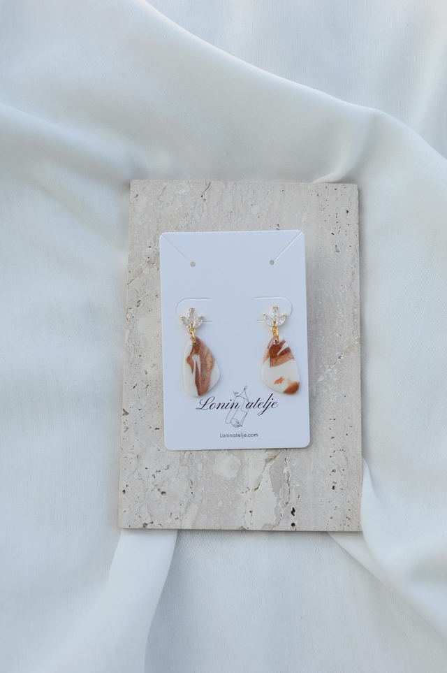 Vsak uhan je unikatno oblikovan, kar pomeni, da nosite majhen kos umetnosti, ki združuje ročno delo, prefinjeno estetiko in naravno lepoto marmorja. Popolni so kot eleganten dodatek k vašim najljubšim kombinacijam.