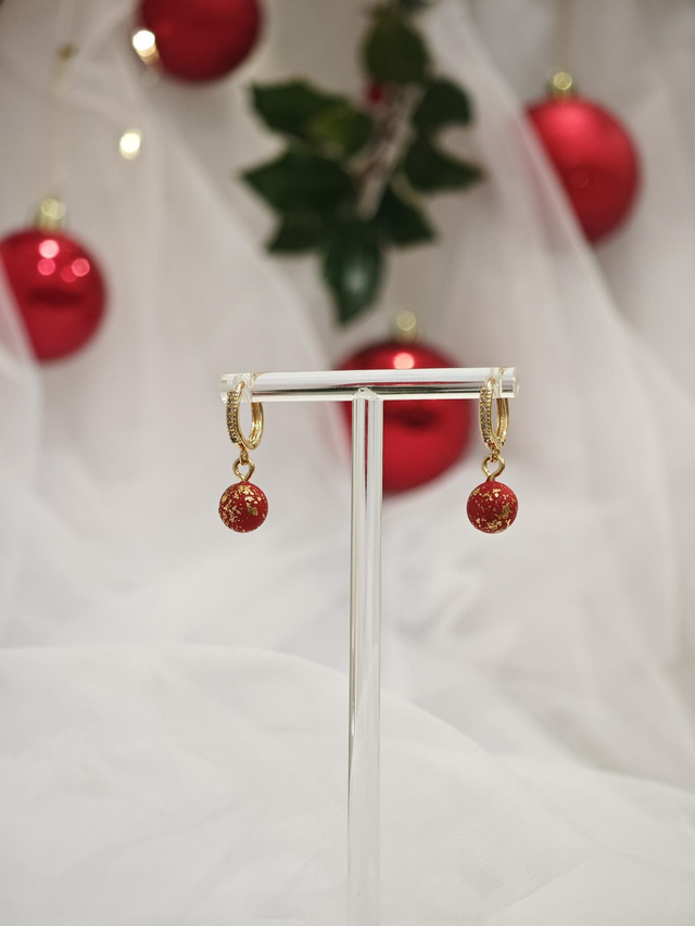Viseči uhani na osnovi iz cirkonije - male rdečo zlate kroglice