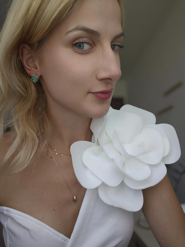 Mini monstera uhani v nežno zeleni barvi ujemajo naravno lepoto z eleganco vsakdana. Vsak par je ročno izdelan iz polimerne gline, z značilno obliko listov, ki simbolizirajo rast, svežino in mir. Na voljo sta mat in sijajna različica – pri slednji površino nežno zgladi in obogati prozorna epoksi smola, ki doda svetleč zaključek in poudari reliefno teksturo.